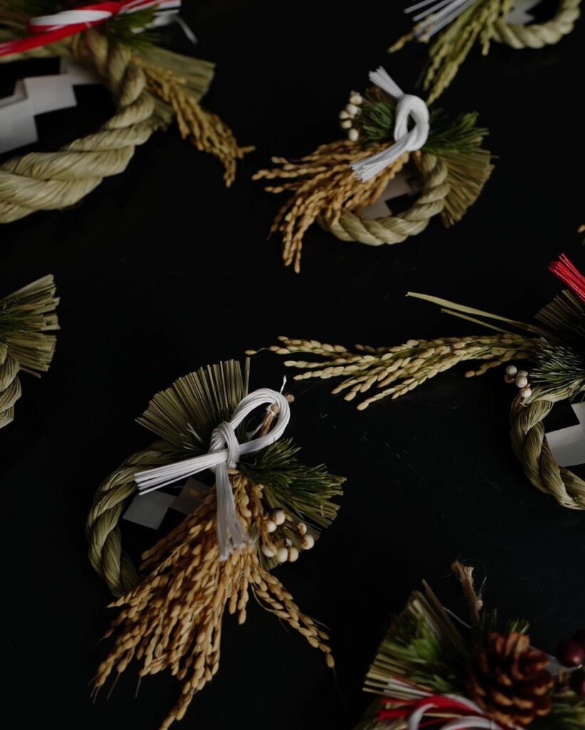 しめ縄や水引を使ったお飾りをサイズも様々、1点1点アレンジをかえて毎年作っていただいています。