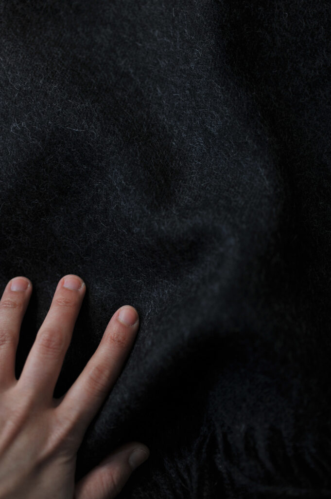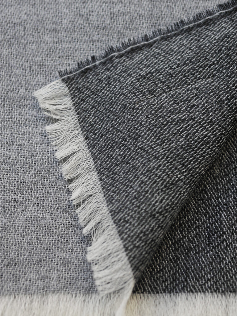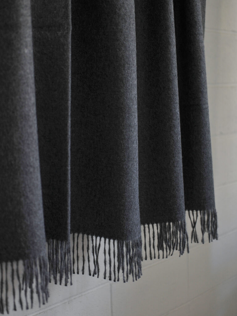繊細なアイラッシュのフリンジと柔らかく優しい風合いが魅力のスローです。アルパカと羊の毛で作られて、両面仕様のカラーリングと贅沢なテクスチャーが美しく繊細な表情を与えています。
