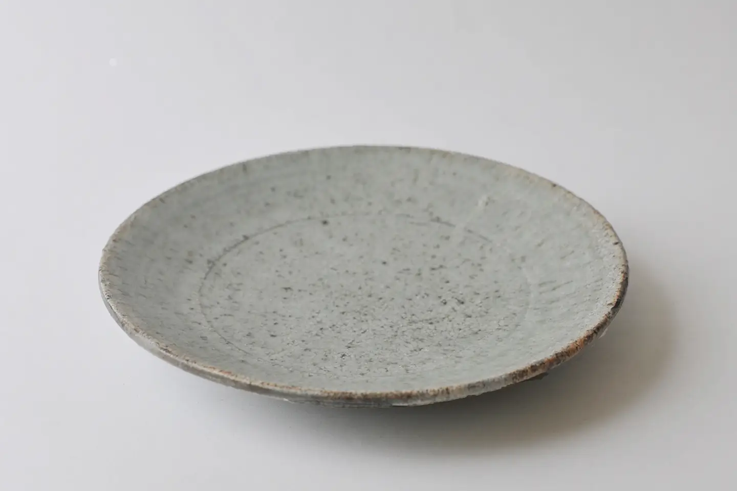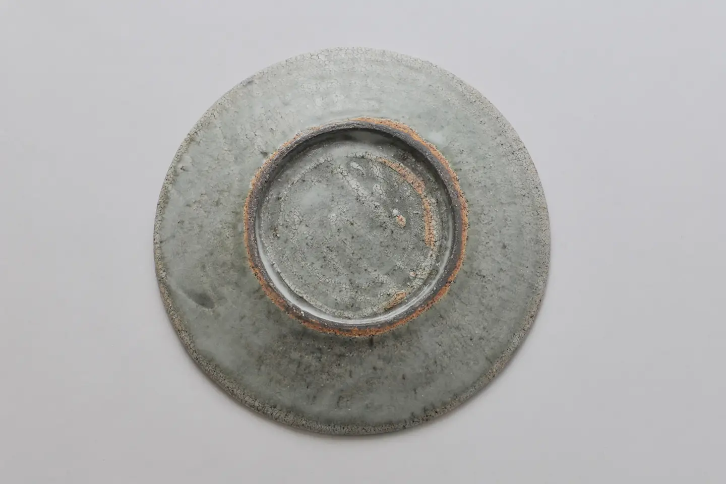 赤土のボディに白土、木灰の釉薬をかけて作られた皿。