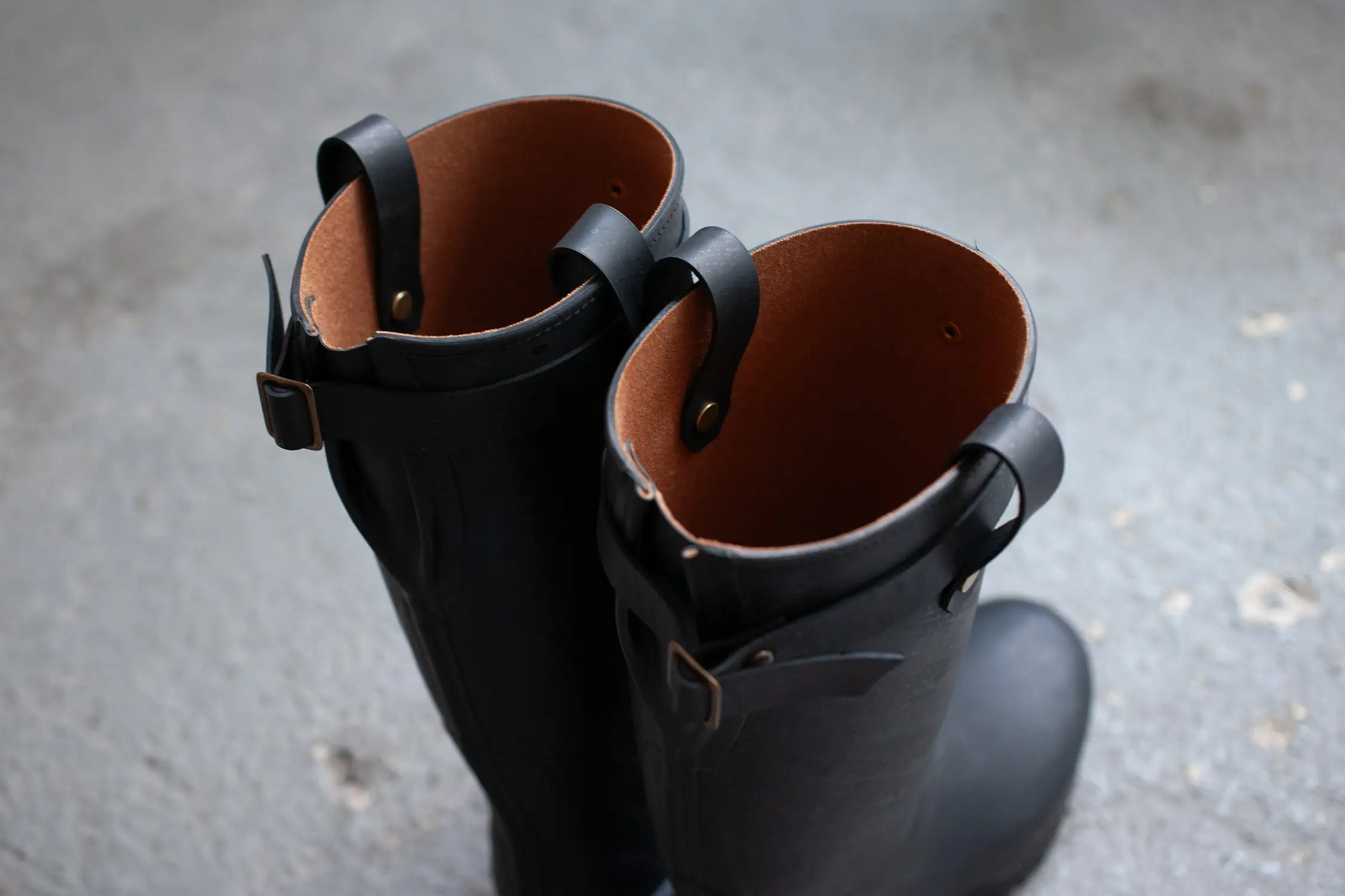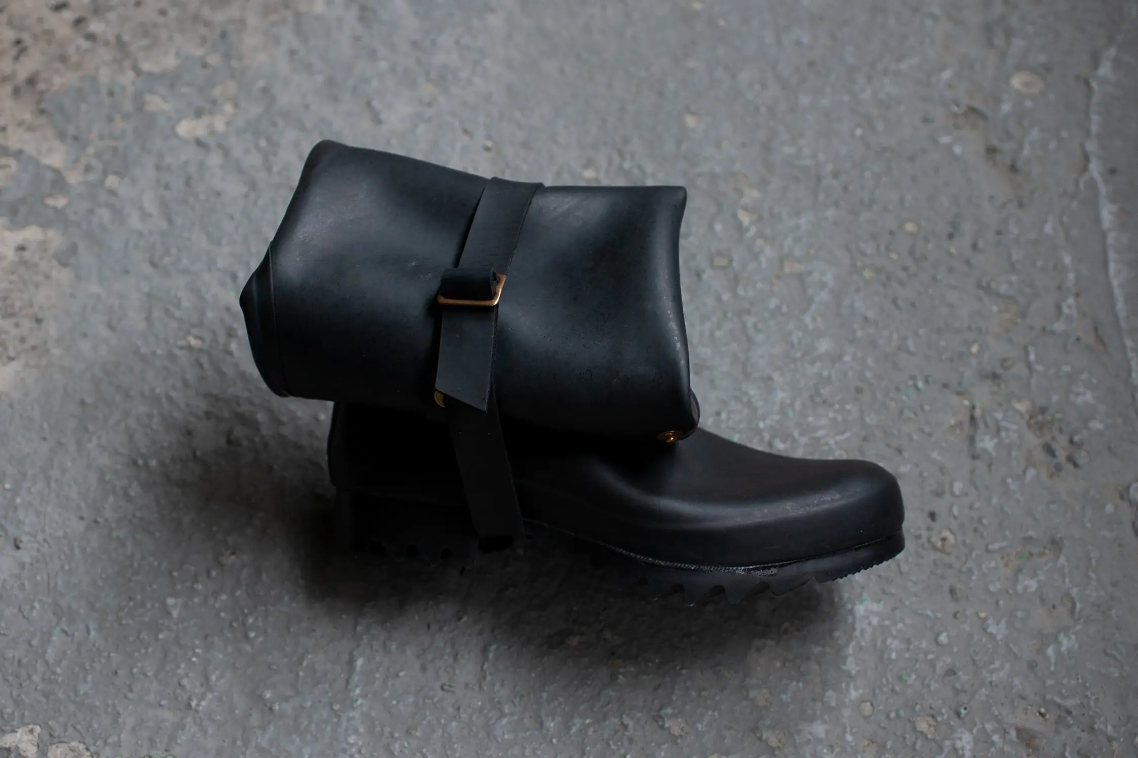 「直接加硫」のヴァルカナイズ製法で作られたラバーブーツ。