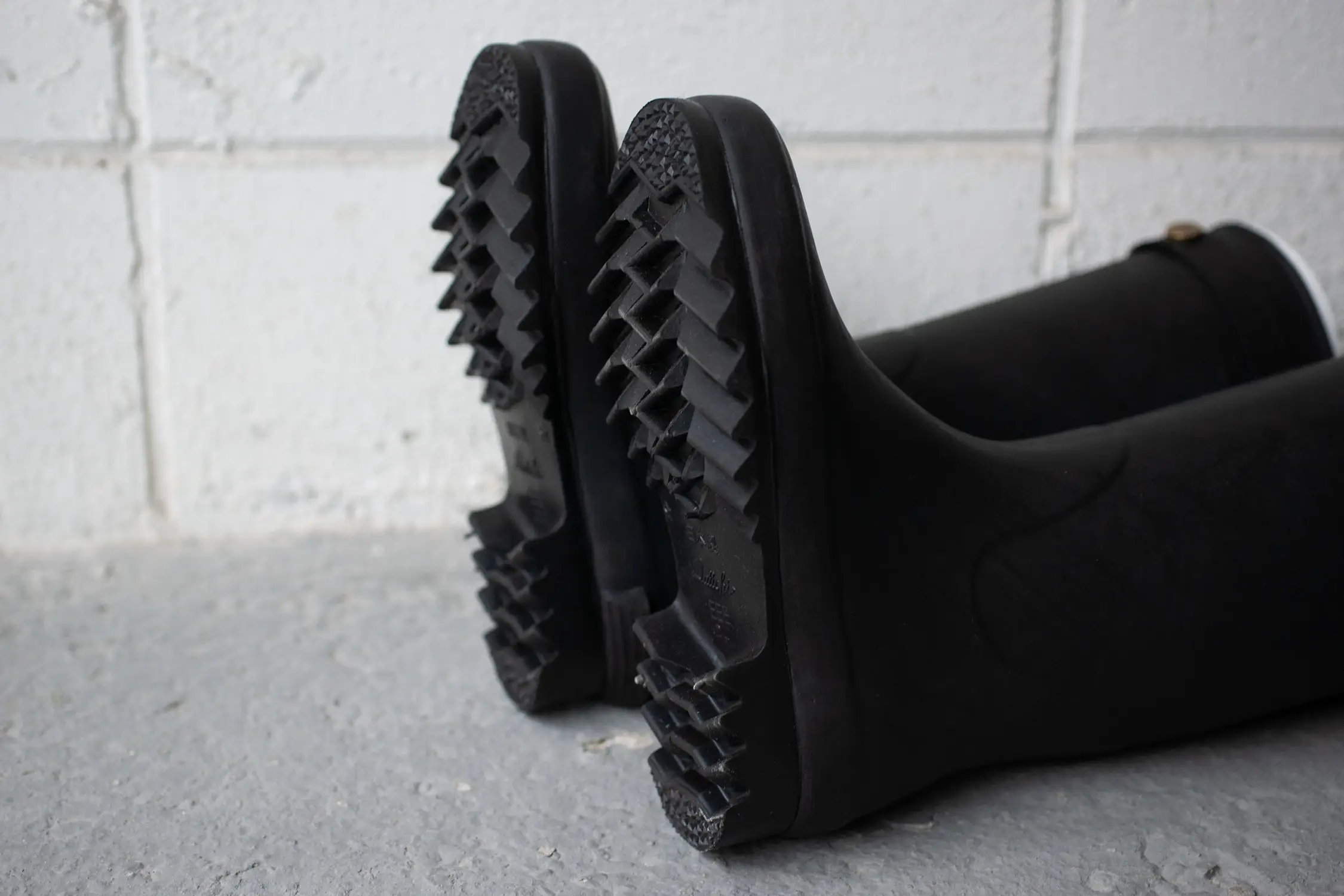 「直接加硫」のヴァルカナイズ製法で作られたラバーブーツ。