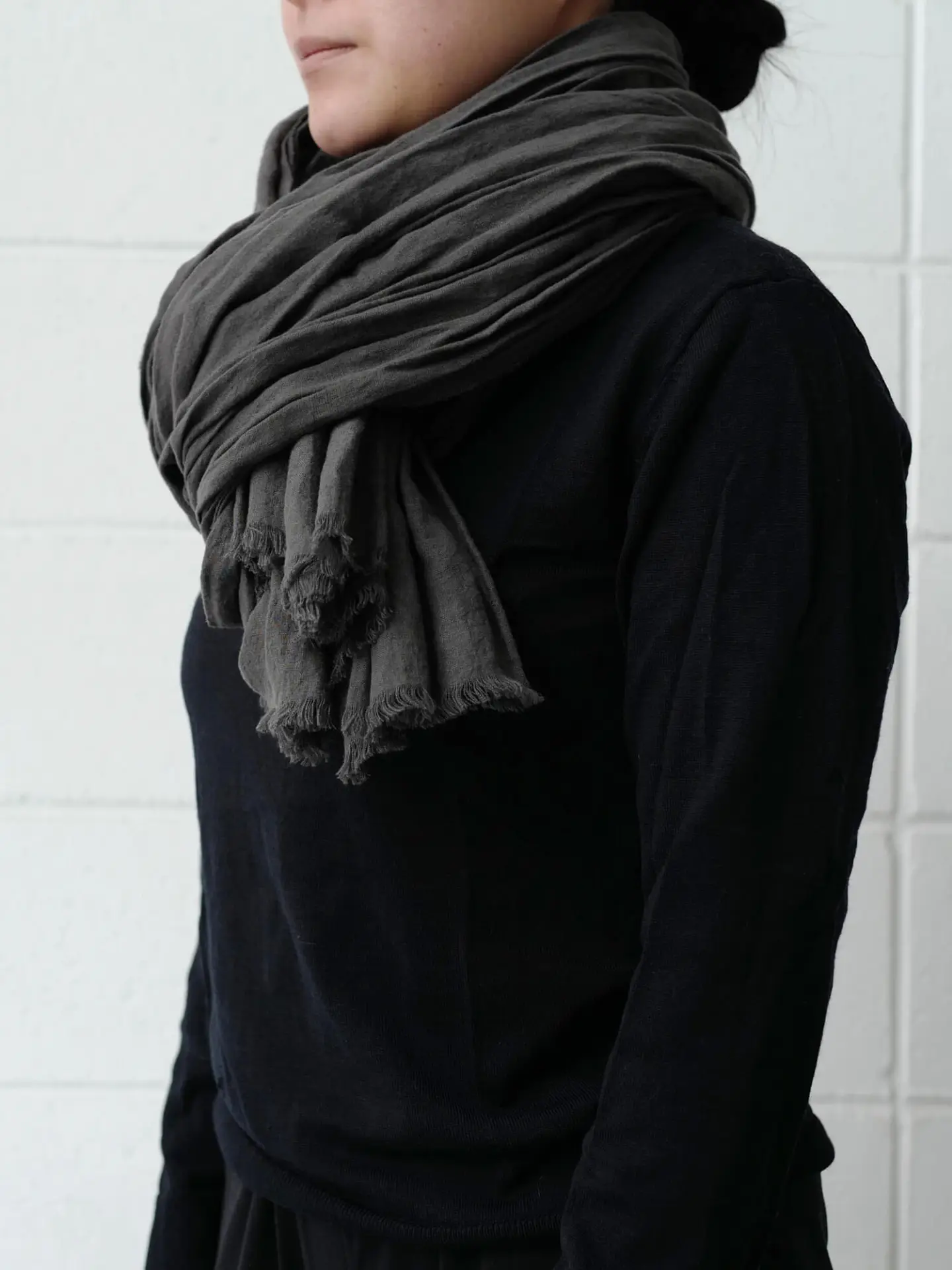 大判なので冬場でも首元は温かく、また夏場は日差しや冷房避けに羽織ったり膝掛けとしてなど通年通してお使い頂けます。
