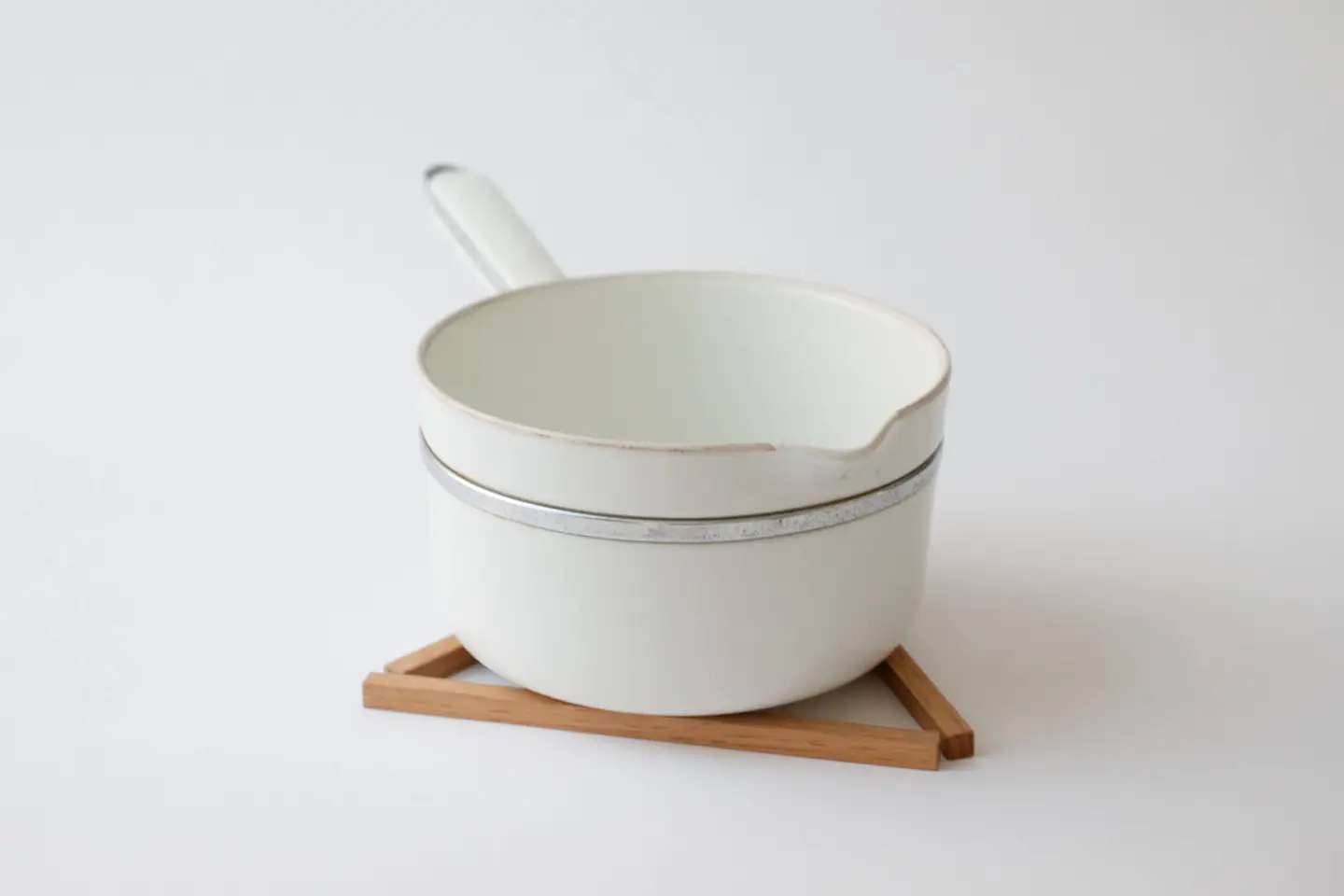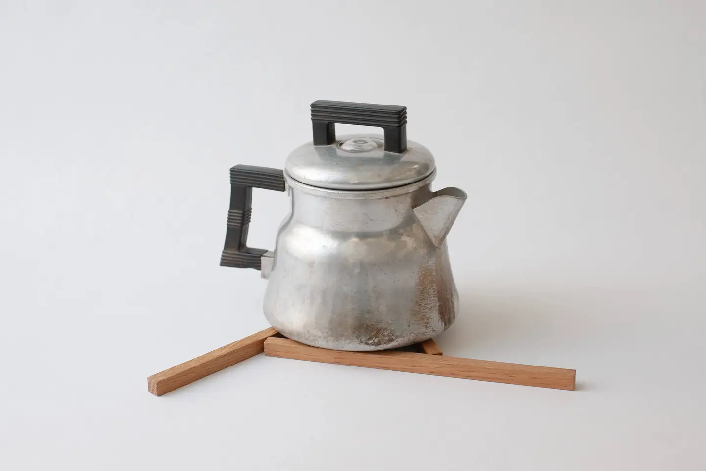 シンプルなアイデアをプラスした鍋敷き。 鍋の大きさに合わない。使わない時に邪魔になる。 そんな不満を、3 本の木で解消します。 三本の並びを変えれば置く鍋の大きさを選ばず、安定感も抜群。 束ねればすっきり、どこにでも収まります。