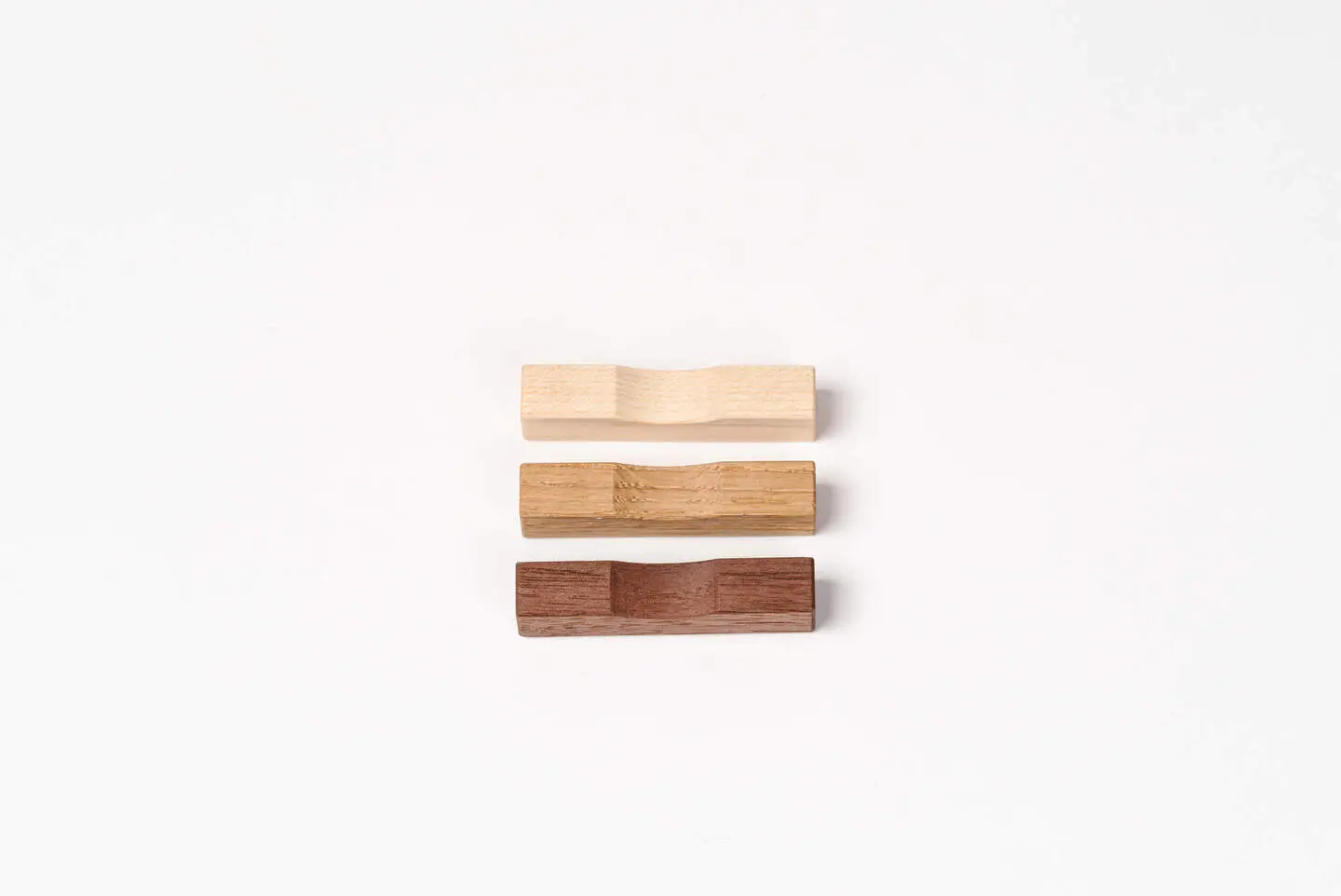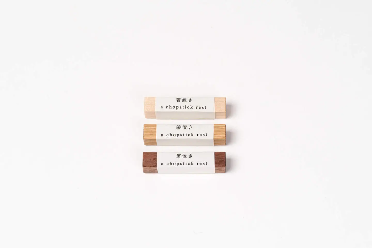 指物職人が作る、無垢の箸置き。 水分を含ませ、乾燥させて削るという工程を何度も繰り返して作られています。 時とともに独自の艶が生まれます。 カエデ・ナラ・クルミの3種類。 色味や質感の違いをお楽しみください。