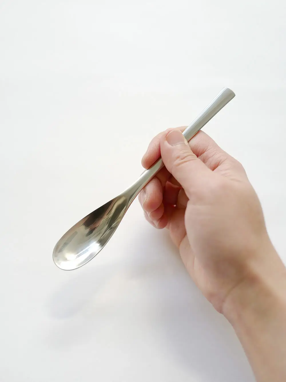 シンプルで美しいカトラリー。 口に運ぶ部分が細長くデザインされています。 洋食・和食・ティータイムなどシーンを選ばず、大きさに合わせて大人から子供までお使いいただけます。 ラージ・ミドル・スモールの3サイズ展開。