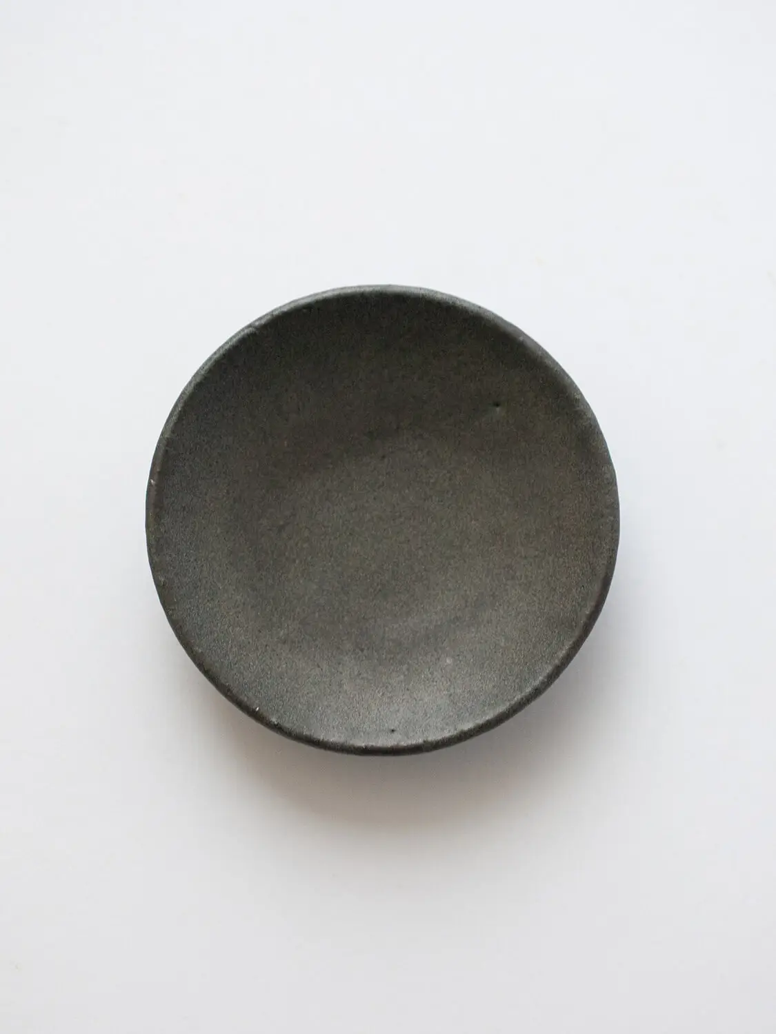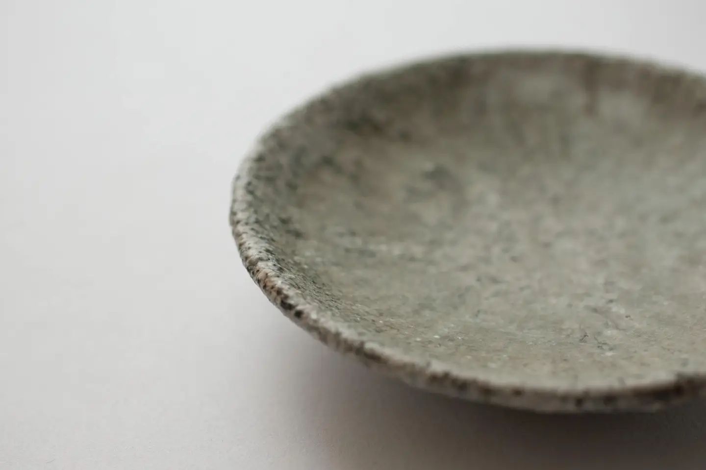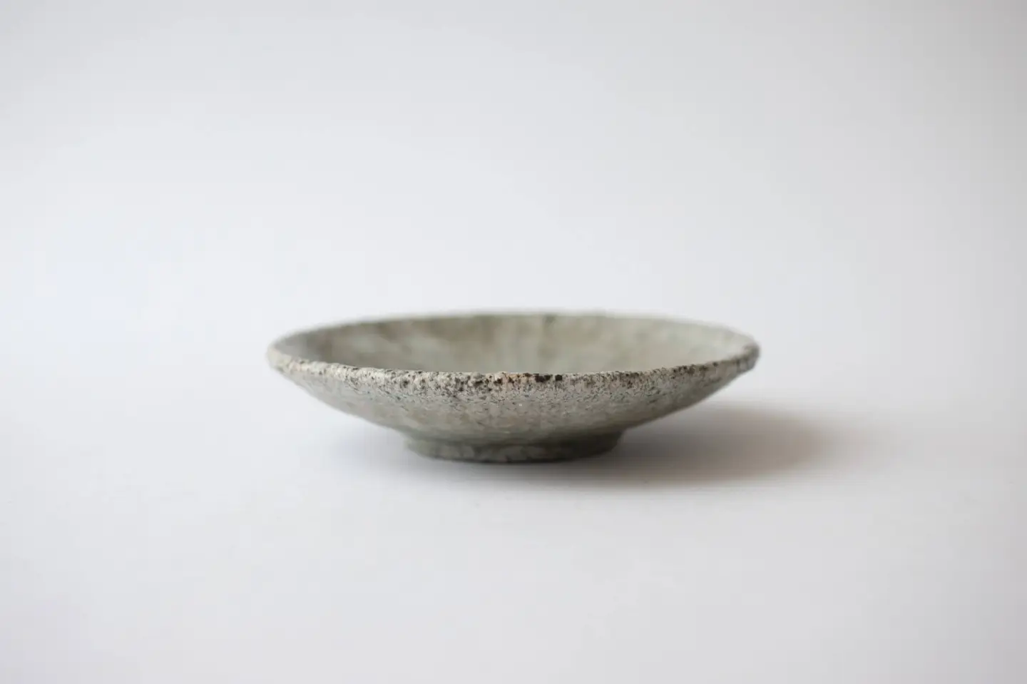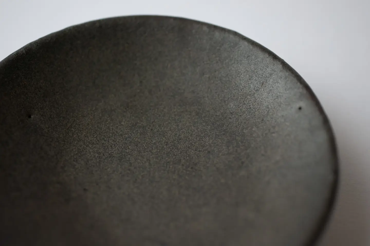 赤土のボディに白土、木灰の釉薬をかけて作られた小皿。