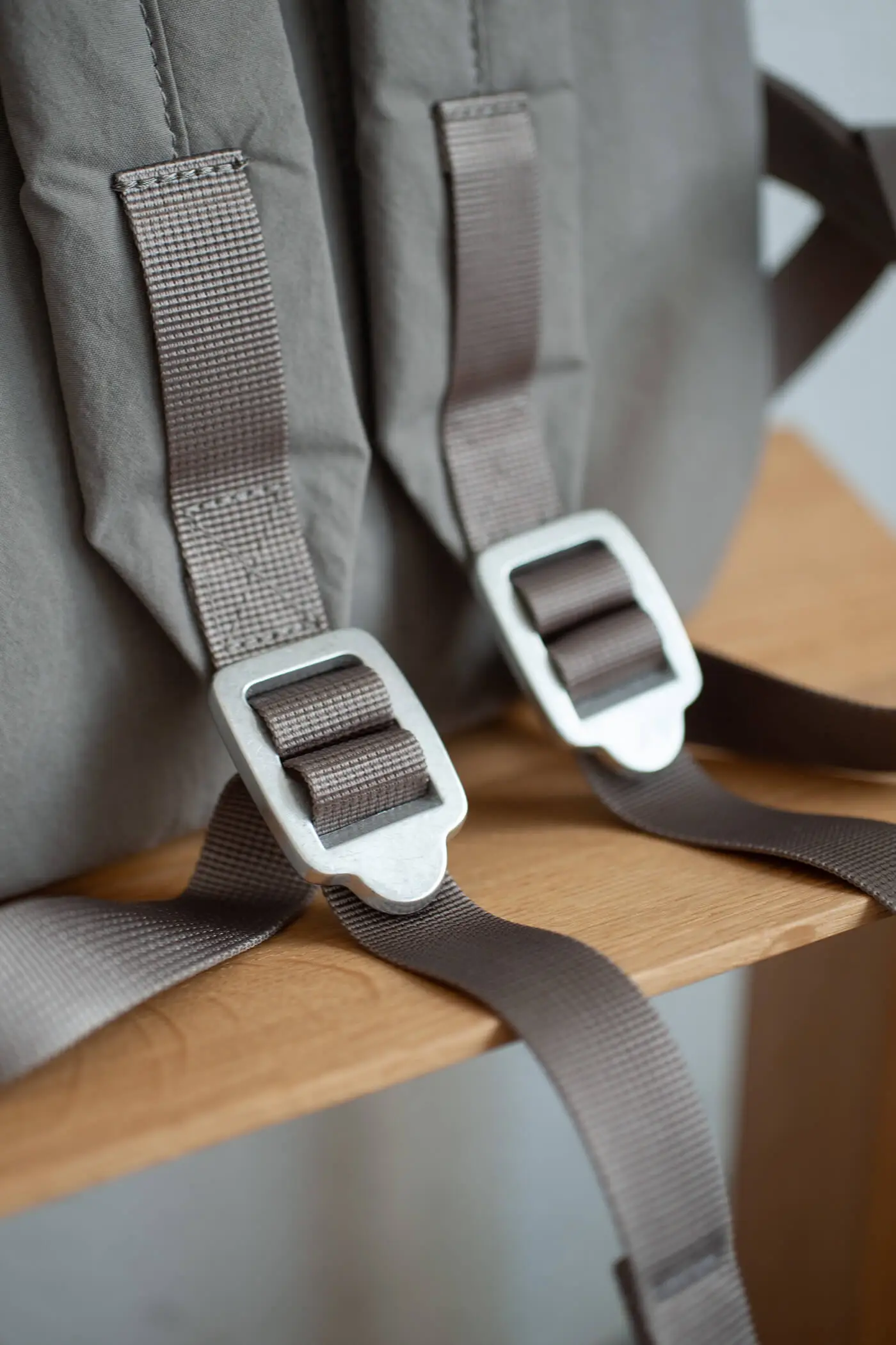 使用済みPETボトルを回収・再利用して作られたポリエステル100%の再生繊維。高密度の格子組織に耐久撥水加工を施した素材で、水が染み込みにくく、撥水性にも優れています。またノンコーティングなので透湿性(蒸れ防止)もあります。