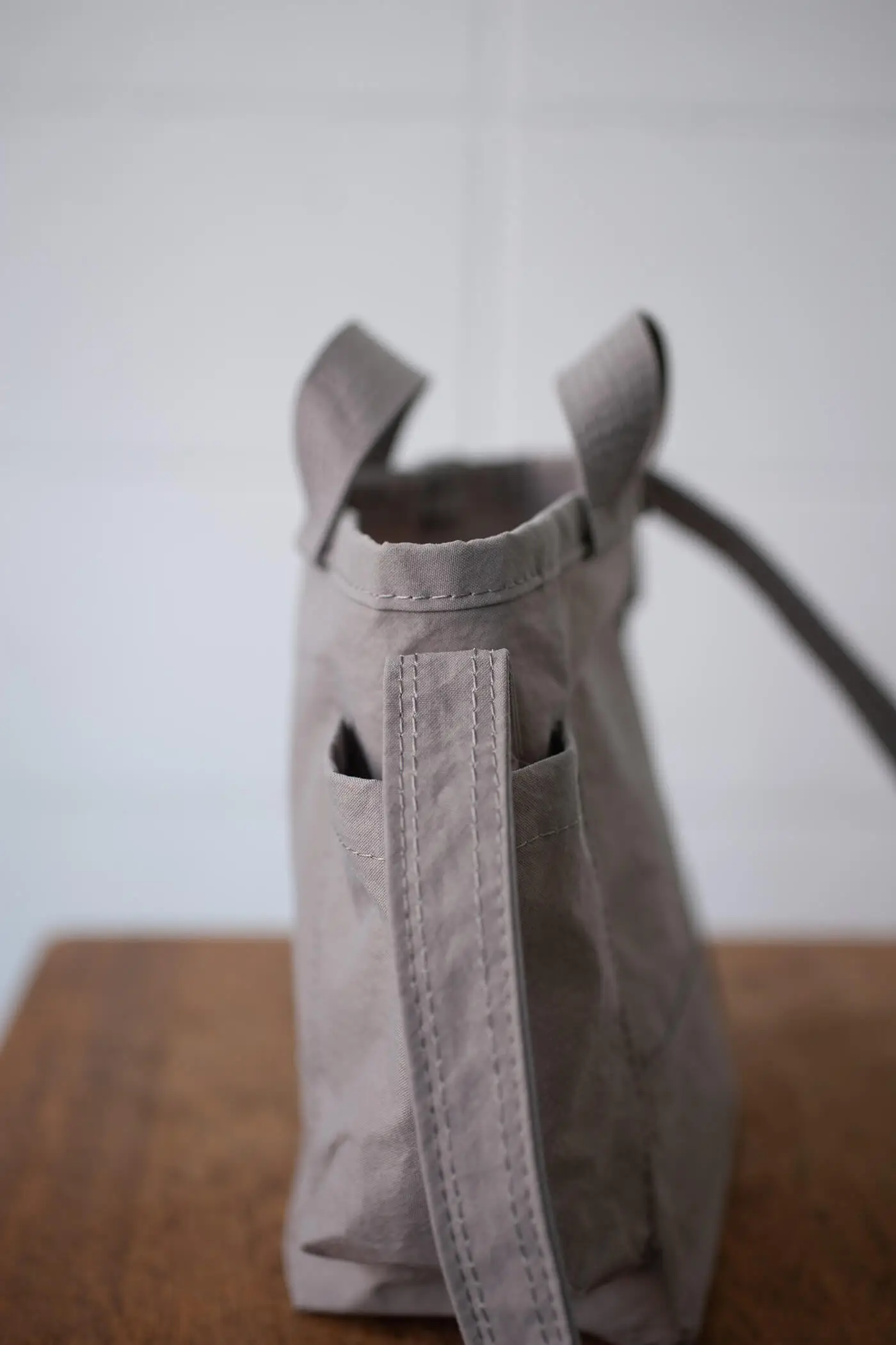 コットンとナイロンをミックスしたVECナイロンは、薄手ながら強度があり、ほどよくしなやか。また、環境に配慮した染色方法を使用しており、グレーは竹炭で染色しています。