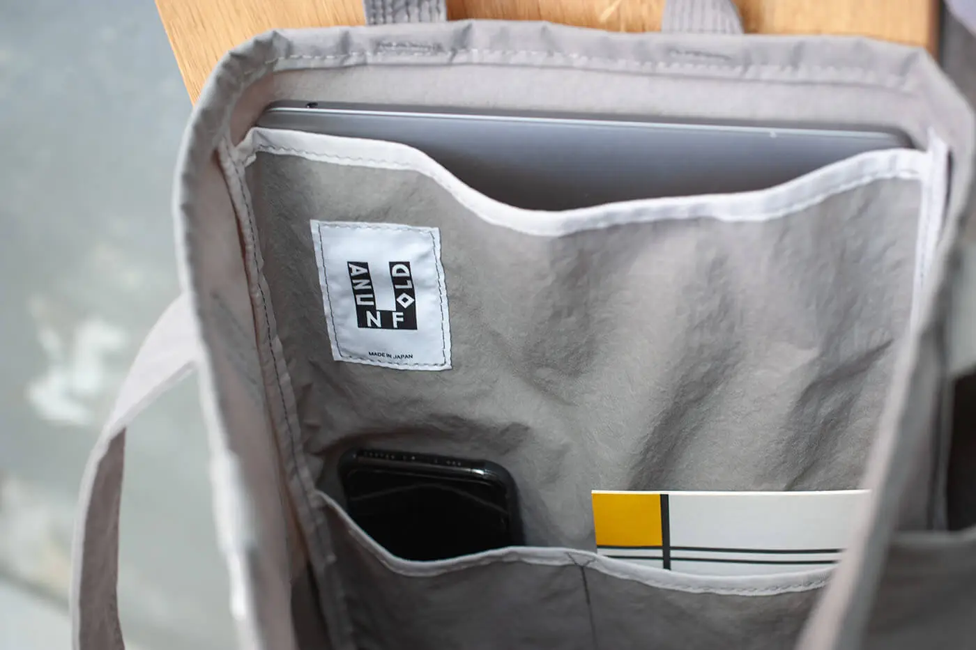 コットンとナイロンをミックスしたVECナイロンは、薄手ながら強度があり、ほどよくしなやか。また、環境に配慮した染色方法を使用しており、グレーは竹炭で染色しています。