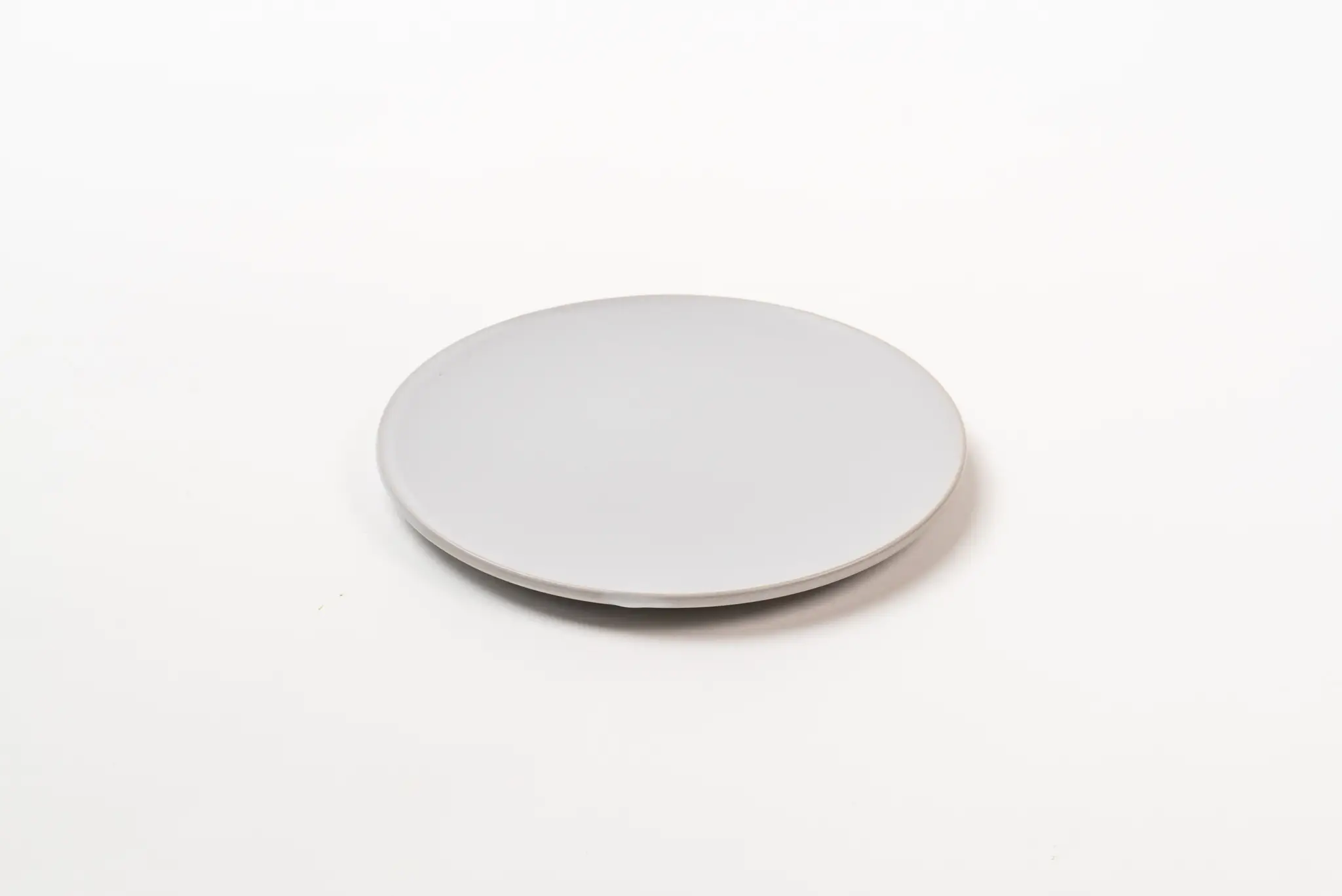 赤土に釉薬をかけることで真っ白ではなくグレイッシュに仕上げています。他の色に比べて表情の変化はほとんどありません。マットな釉薬ですので、金属製カトラリーを使用すると跡(メタルマーク)がつきます。