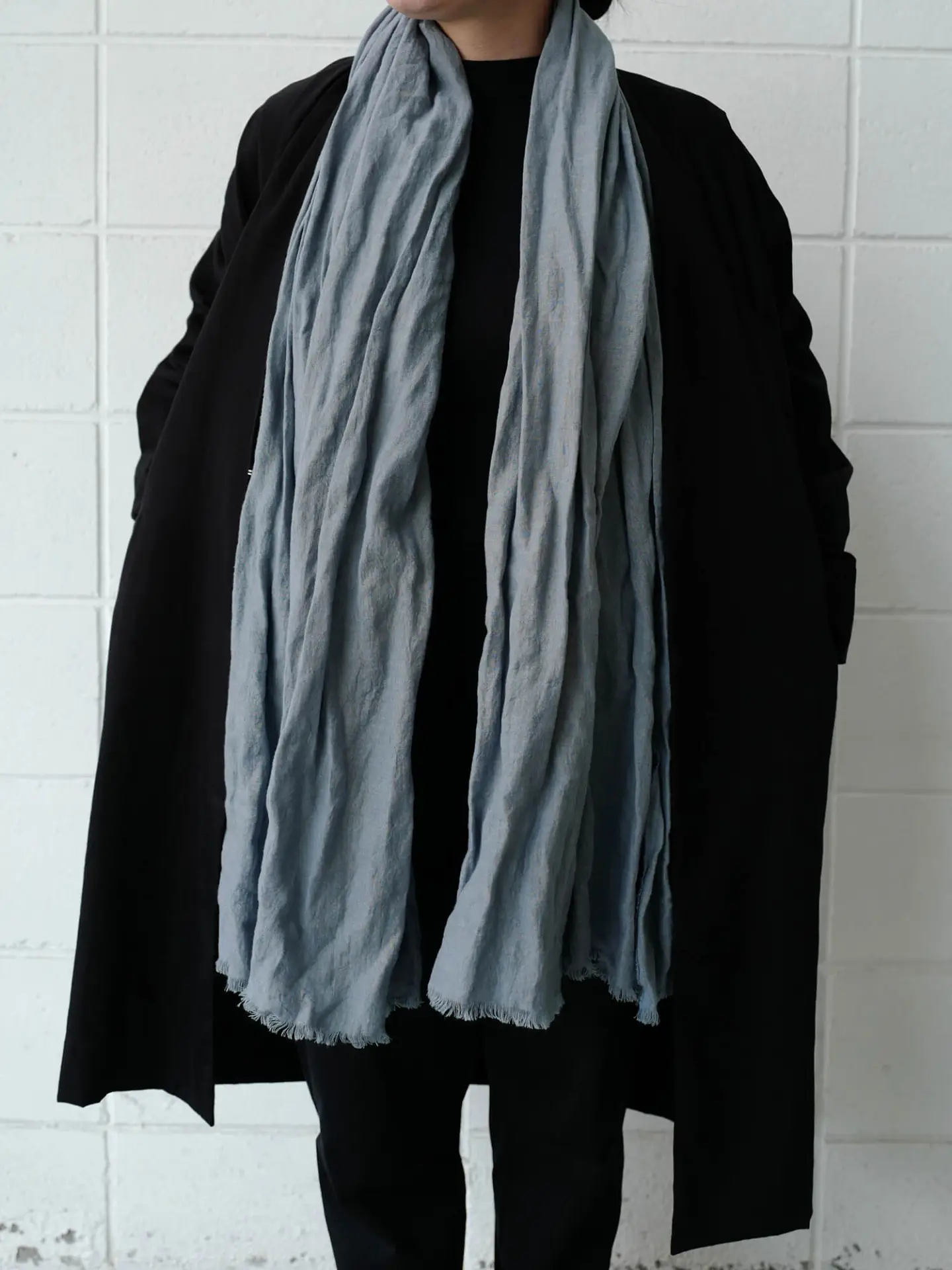 大判なので冬場でも首元は温かく、また夏場は日差しや冷房避けに羽織ったり膝掛けとしてなど通年通してお使い頂けます。