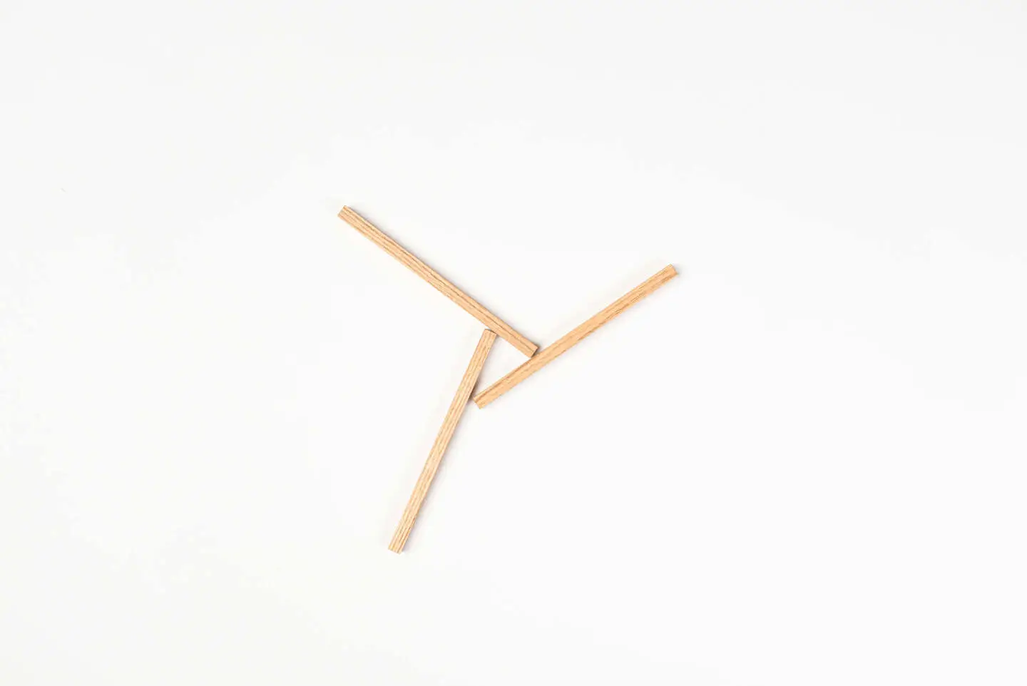 シンプルなアイデアをプラスした鍋敷き。 鍋の大きさに合わない。使わない時に邪魔になる。 そんな不満を、3 本の木で解消します。 三本の並びを変えれば置く鍋の大きさを選ばず、安定感も抜群。 束ねればすっきり、どこにでも収まります。