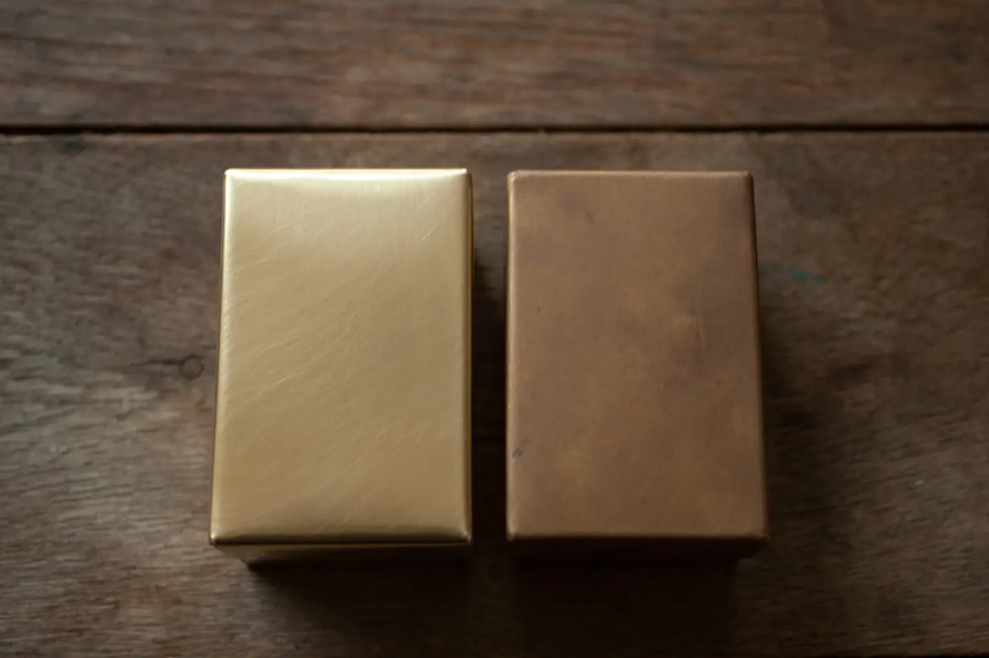 ・職人さんが1点1点手づくりをしている製品です。小さなキズや、素材の特性上斑点のようなものが見受けられる場合がございますが、経年変化と共に目立ちにくくなっていきます。素材の味わいとしてお楽しみください。